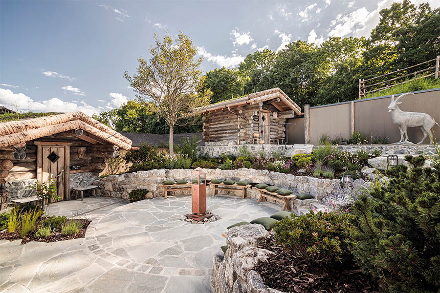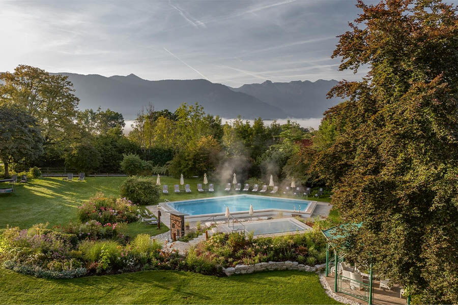 Ein noch recht neues Highlight ist das im Sommer 2022 eröffnete Almsaunadorf, welches das Wellnessareal mit Dampfbädern sowie zwei ganzjährig beheizten Außenpools, einem Indoor-Pool und mehreren Behandlungsräumen auf nun über 2.000 Quadratmeter erweitert. Auch die Almhütte, die auf der Zugspitze vor dem Abriss gerettet und im Garten des Alpenhofs wieder aufgebaut wurde, schließen wir auf Anhieb ins Herz. Zusammen mit der gemütlichen Feuerstelle und den mit Schaffellen verzierten Sitzbänken lädt der Garten zu gemütlichen Stunden unter dem Sternenhimmel ein. Egal in welchem Teil des Alpenhofs Murnau man sich auch befindet und mit welchen Mitarbeitern man zu tun hat, die Wohlfühlatmosphäre und das spannende Zusammenspiel aus Alt und Neu in Verbindung mit vielen Kunstwerken im Garten, an den Wänden und in den Blumenvasen machen den Aufenthalt wunderbar abwechslungsreich und angenehm.