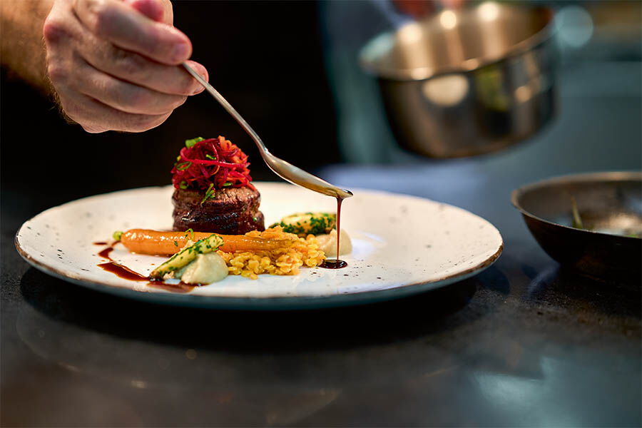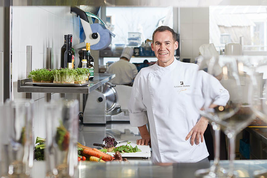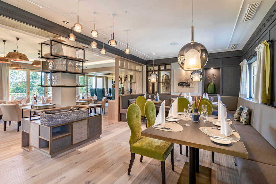Dazu gesellt sich ein lichtdurchflutetes Panorama-Restaurant unter der Leitung von Küchenchef Claus Gromotka samt Zirblstube, Reiterzimmer, Wintergarten und Sonnenterrasse – jeweils mit Blick auf den Hotelgarten. Die mehrfach prämierte Weinkarte mit über 1.000 Positionen von Sommelier Domenico Durante und die regional verwurzelte Roots Bar mit neuem Konzept runden das Kulinarikangebot genüsslich ab.