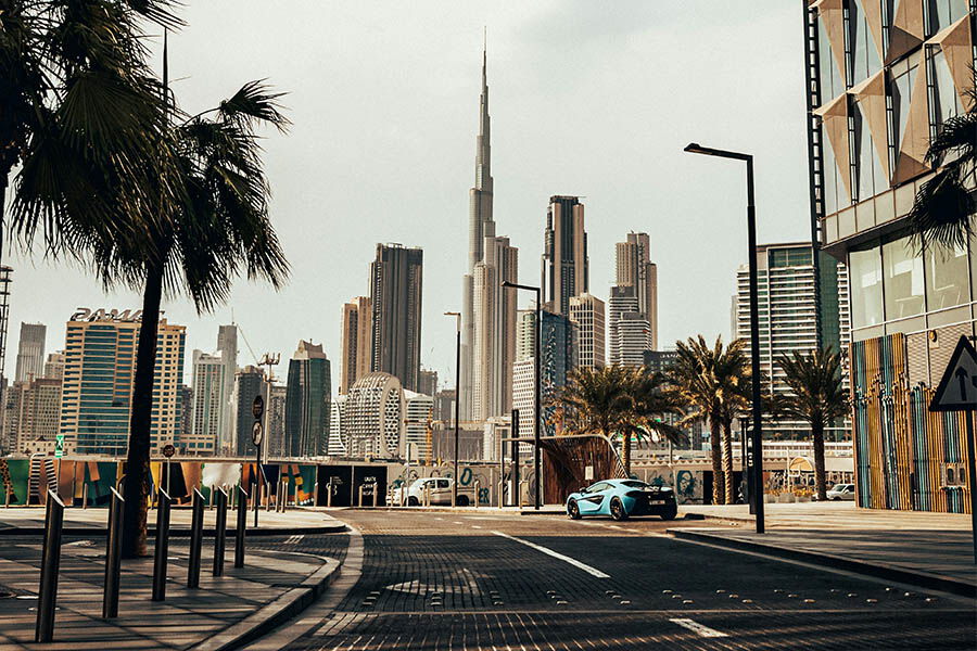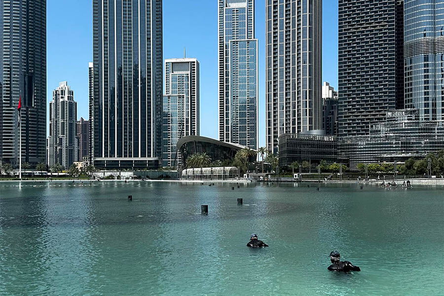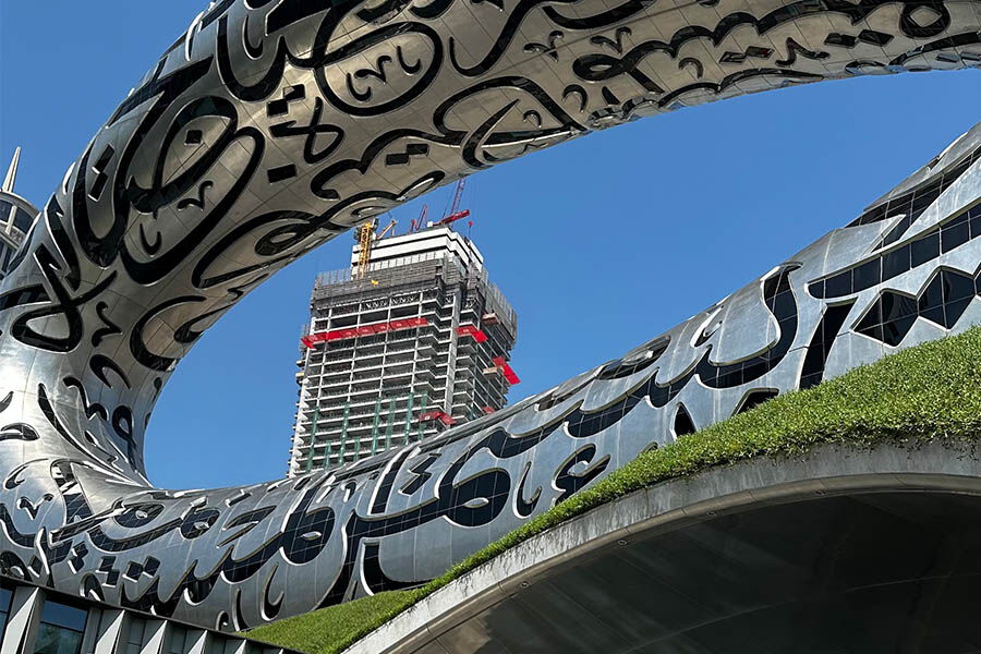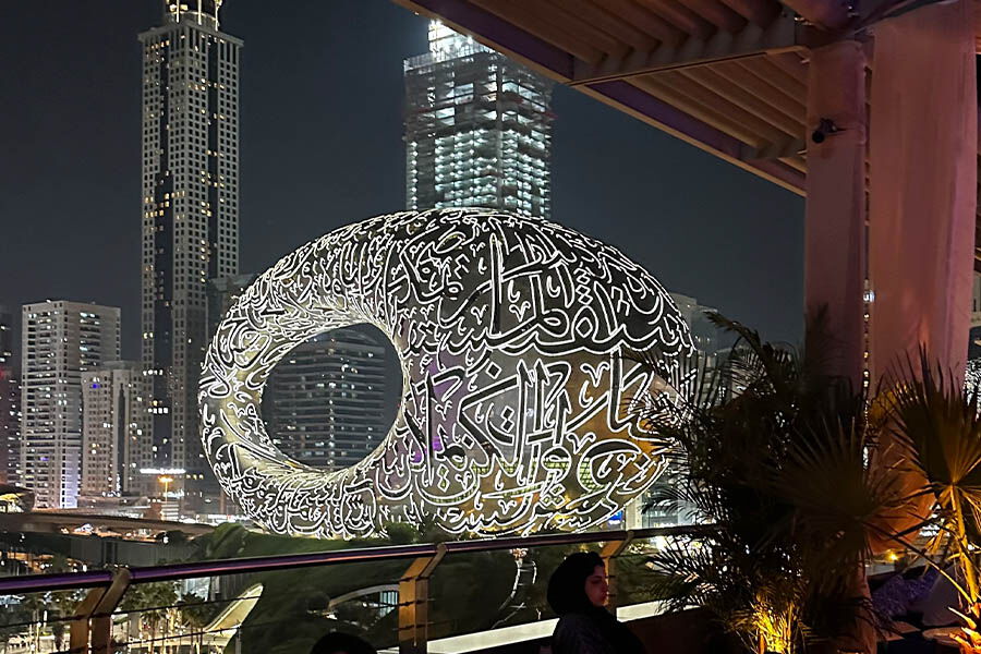 Ach ja … und dann ist da ja auch noch der Rest von Dubai, den man, wenn man schon einmal da ist, vielleicht nicht ganz außer Acht lassen sollte. Ob Dubai Mall, Burj Khalifa, The Frame, Aquarium, Fountain, Medina, Burj Al Arab oder Strandbesuch – in der Wüstenmetropole gibt es einige Highlights zu entdecken, die oft auch buchstäblich hoch hinaufführen. Der Burj Khalifa beispielsweise misst 828 Meter Höhe und ist damit seit 2009 das höchste Gebäude der Welt. Ihn erreicht man direkt von der Dubai Mall aus, die wiederum zu den größten Einkaufszentren der Welt gehört. Auf mehreren klimatisierten Stockwerken reihen sich auf 350.000 Quadratmetern Luxusmarken aneinander. Aber auch wer gar nicht shoppen will, wird sich dort nicht langweilen, denn alleine die Dekorationen, der Wasserfall, das Aquarium und die Fontänenshow abends am See vor der Mall sind einen Ausflug wert. Was ich neben der beeindruckenden Architektur und dem futuristischen Look & Feel der Stadt sehr genossen habe, war ein Ausflug in die Altstadt von Dubai. Tatsächlich existiert in der ultramodernen City, ein kleines Viertel, aus alten Sandsteingebäuden, mit Markisen und Souvenirständen, das den ursprünglichen Zauber des Orients versprüht. Direkt am Wasser gelegen, kann man nach dem Altstadtbummel auf kleine Abras (traditionelle Holzboote) aufspringen und sich per Wassertaxi über den Dubai Creek schippern lassen. Auf der anderen Seite befindet sich dann beispielsweise der berühmte Gold-Souk von Dubai. Aber auch der Textil-Souk lädt zu einer spannenden Shoppingtour ein, in der man sein Verhandlungsgeschick extensiv kultivieren kann und eigentlich sogar muss – denn den erstgenannten Preis zu zahlen, wäre pure Verschwendung.