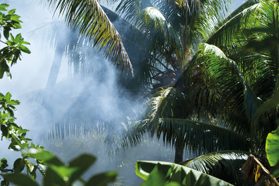 Dann durchfahren wir einen nassen, engen Tunnel – der uns auf die andere Seite der Insel bringt. An den Küsten ist schlagartig schönes Wetter, während es in der Inselmitte geregnet hat. Die Wolken hängen wie weiße Schleier in den tief grünen Hügeln. Teuai erklärt, dass die Einheimischen in diesen Wolken eine Verbindung zwischen Himmel und Erde sehen.
