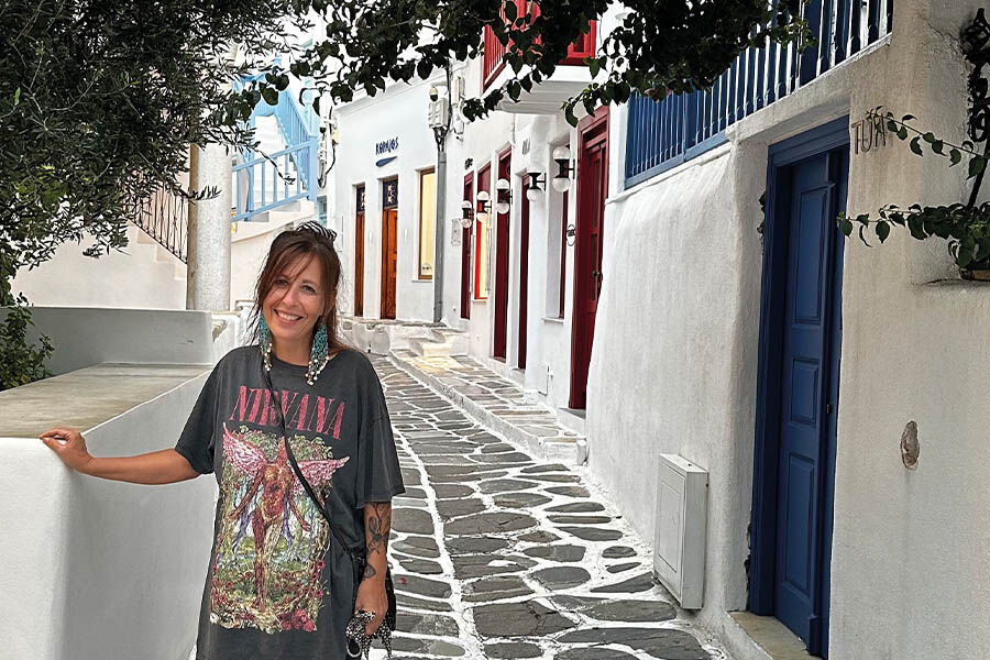 Der Nachmittag und Abend steht uns dann auf der Trendinsel Mykonos zur freien Verfügung. Bars und Discotheken, Restaurants und luxuriöse Boutiquen, Cafés und Kunstgalerien reihen sich hier in einem Labyrinth aus blau-weißen Gassen, zwischen Burgruine und den berühmten vier Windmühlen, aneinander. Es gibt viele ausgefallene Locations wie z. B. den Garten des Freiluftkinos oder das vegane Streetfood Bistro „Rhino“ zu entdecken. Da wir Ende Oktober auf der Insel sind, haben die meisten populären Hotspots ihre Tore für die Winterpause bereits geschlossen. Trotzdem sind der Glamour, die LGBTQ-Historie und ein offener und freier Lebensstil an jeder Ecke spürbar. Abseits der Hauptstadt hat Mykonos aber auch verträumte Dörfer und schöne Strände zu bieten. Für den eingefleischten Griechenlandfan gibt es sicherlich interessantere Kykladen-Inseln, die ruhiger und günstiger sind. Wenn man aber schon einmal in der Nähe ist, sollte man sich zumindest einen Tag und eine Nacht lang die wilden Party-Vibes der Insel des Windes durch das offene Haar und um die nackten Beine wehen lassen.