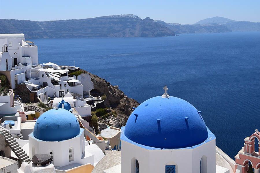 Der dritte Seetag bringt uns zum Inbegriff der griechischen Inseln: Santorini wird so gehypt und man hat schon so viele Fotos gesehen, dass ich versuche meine Erwartung ein wenig herunterzuschrauben. Trotzdem klopft das Herzchen, als wir ganz früh am Morgen in die halbmondförmige Bucht einfahren und den Blick zu den weißen Felskanten heben. Von Weitem sah es noch aus, als würde dort Schnee liegen, dabei sind es die weißen Dörfer, die da ganz oben, wie hingetupft schimmern. Seit Anfang Mai liegen zum ersten Mal keine Kreuzfahrtschiffe vor Anker. Ein Grund, weshalb ich mich in Griechenland immer wieder für die Nebensaison entscheiden würde. Auch die sind jetzt schmeichelhaft angenehm. Mit dem Tender bringen uns die Crewmitglieder zur Seilbahn. Früher wurden die Touristen mit Eseln die steilen Klippen hinaufbugsiert. Aber diese Zeiten sind zum Glück vorbei. Oben angekommen erwartet uns Jannis, unser Führer. Er erzählt uns stolz von seiner Insel, die eigentlich aus fünf Inseln besteht, die früher alle zu einem großen Vulkan gehörten, der etwa 1.600 Jahre v. Chr. ausgebrochen und in sich zusammengestürzt ist. Auf dem übriggebliebenen Kraterrand verteilten sich die Orte Thira, Firostefani, Imerovigli und Oia. Wir drehen eine kleine Runde durch Thira, die Inselhauptstadt. Noch sind die Geschäfte geschlossen, alles liegt ruhig und in der Morgensonne glänzend vor uns. Mit dem Bus fahren wir anschließen nach Oia, wo die meisten der berühmten Fotos entstehen. Und tatsächlich. Es ist ein Traum, der sich genau so vor uns ausbreitet, wie auf tausend Instagram Fotos dargestellt. Und da wir immer noch fast allein auf der Insel unterwegs sind, können nun auch wir so ein Foto in unser Profil stellen und unser breites Grinsen zur Schau tragen. Den Nachmittag verbringen wir wieder in Thira, wo es nun schon etwas belebter zugeht. Für Santorini-Verhältnisse ist es leer, bekommen wir immer wieder zu hören und genießen unser Glück bei leckerstem Eis und Cocktails mit Blick auf die wunderschöne Ägäis und die vorgelagerten Inseln. Zum Sonnenuntergang setzen wir uns unten am Hafen auf den Steg, lassen die Füße über dem Wasser baumeln und beobachten, wie der glutrote Ball hinter der Galileo im Meer versinkt. Ach ja … schöner kann es eigentlich nicht mehr werden.