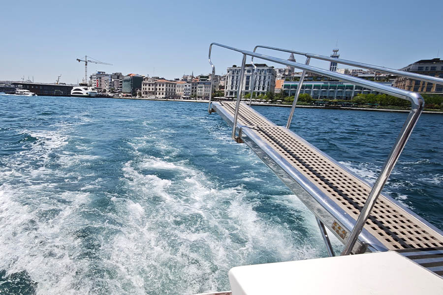 Am Abend kehre ich zurück zum Festland und besuche die Peninsula, eine exklusive Lounge am Bosporus, wo ich bei mediterraner Küche und einem Glas Weißwein den Sonnenuntergang genieße