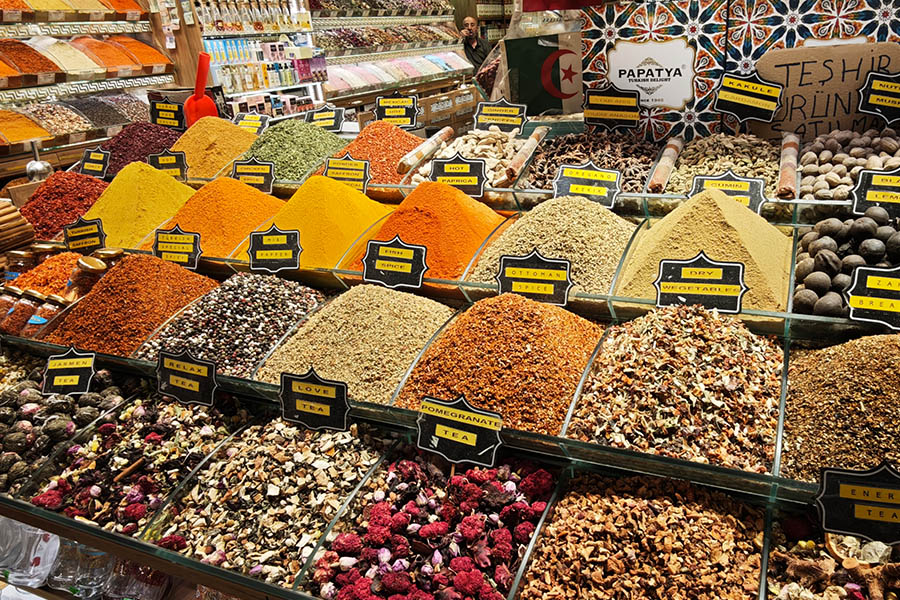 Dann tauche ich ein in den Großen Basar, einen Dschungel aus über 4.000 Geschäften. Im angrenzenden alten Basar riecht es nach Safran, getrockneten Feigen und frisch gemahlenem Kaffee. Ich kaufe ein paar Gewürze und lasse mich von der Hektik treiben.