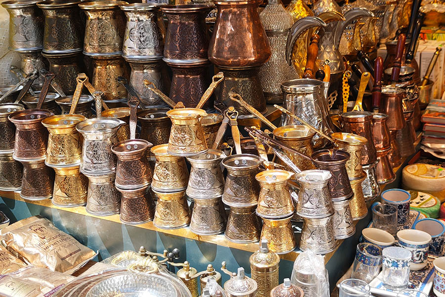 Am nächsten Morgen schlendere ich durch die Istiklal Street, die pulsierende Lebensader Istanbuls. Alte Straßenbahnen quietschen vorbei, in den Seitengassen verstecken sich Handwerkskunst und Spezialgeschäfte: handgefertigte Keramiken, traditionelle Gewürze, fein gearbeitete Kupferwaren.