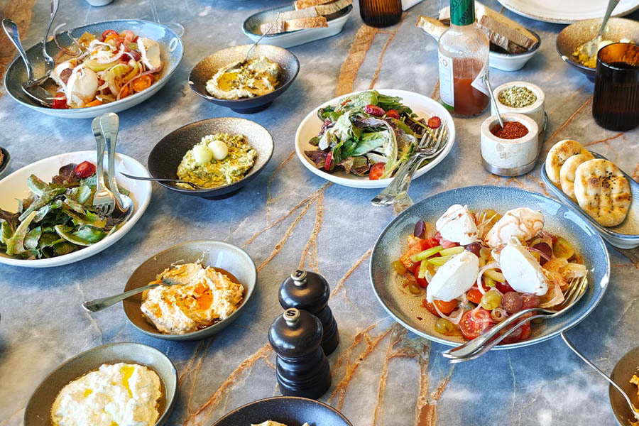 Nach dem Konzert gehe ich in ein kleines Lokal in Beyoğlu und bestelle türkische Vorspeisen-Spezialitäten: Dolma (gefüllte Weinblätter), Hummus, Auberginencreme und dazu ein Glas Raki, der anisartige Nationalgeist der Türkei.