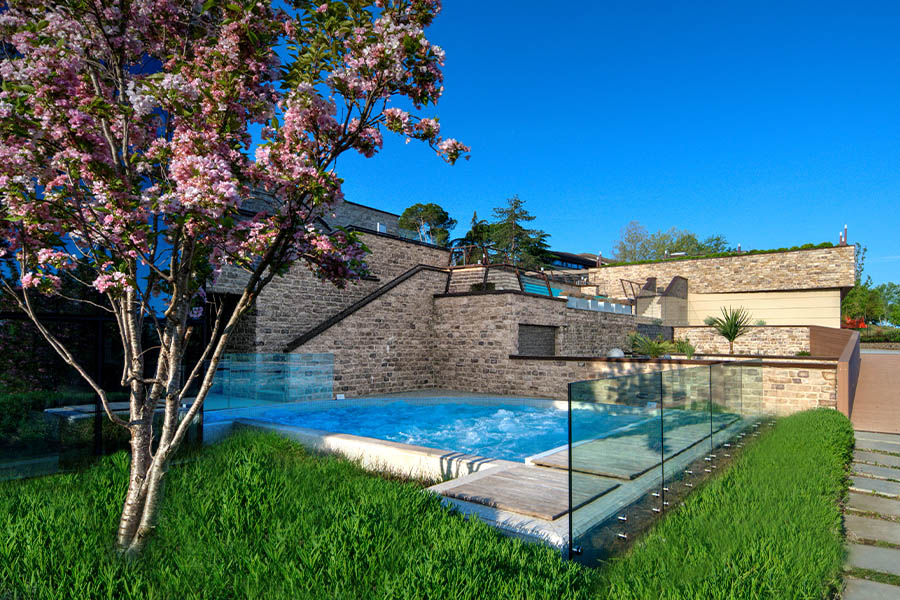Eine Landschaft wie gemalt beginnt gleich hinter den Stadttoren. Sattgrün und hügelig wie mit einem Pinsel geschwungen. Die so typischen Säulenzypressen, Kastanienbäume und verschiedene Eichenarten tragen zur landschaftlichen Schönheit und dem charakteristischen Erscheinungsbild der Region bei. Inmitten dieser auf einem Hügel liegt der Palazzo di Varignana aus dem 18. Jahrhundert. Er wurde im Laufe der Zeit restauriert und zu einem exklusiven Resort umgebaut. Teil des Konzepts ist die Rückgewinnung und Regeneration von historischen Gebäuden, Grundstücken und verlassenen Landhäusern inklusive antiker Anbauten. Über die Jahre ist ein Komplex entstanden mit 150 Zimmern plus mitten in der Natur liegende exklusive Villen mit privaten Pools und eigenen Gärten. Warme Erdtöne verbinden die Interieurs mit der Umgebung. Klare Linien und Verzicht auf opulente Dekoration betonen die historische Bausubstanz. Das Varsana-Spa mit Pools, Saunen, Hamam sowie türkischem Bad und das Medical Center bieten Entspannung und Erholung pur.