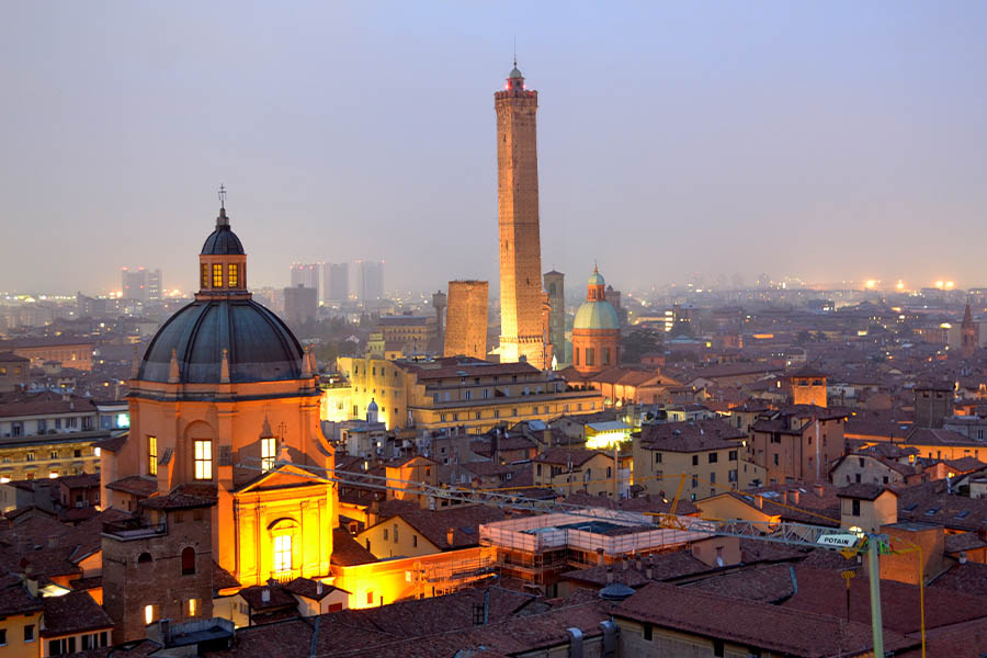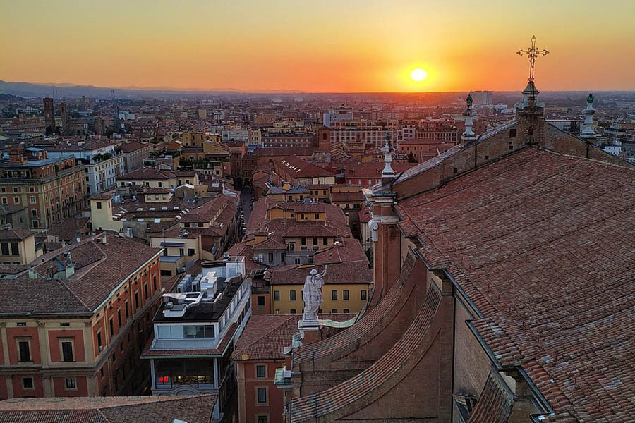 Fast 40 km Arkadengänge, die die weitläufige Innenstadt mit ihren Fußgängerzonen, Plätzen, Kirchen und Palästen miteinander verbinden, sorgen für Schatten oder bei Regen vor entsprechenden Schutz. Die ‚Portici‘ wurden im Jahr 2021 ins Weltkulturerbe der UNESCO aufgenommen. Der bekannteste Arkadengang ist der Portico di San Luca. Er führt über 4 Kilomenter hinauf zur Wallfahrtskirche San Luca. Die Arkaden San Luca gilt als der längste Arkadengang der Welt.