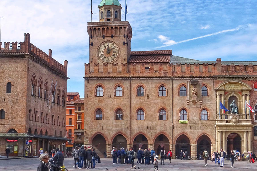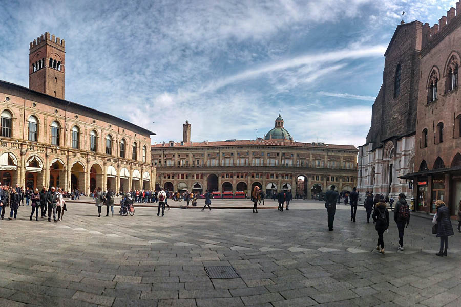Zweifelsohne kann sich Bologna mit Stolz als eine der besterhaltenen und schönsten Altstädte Europas präsentieren. Und die im Jahr 2000 zur Europäische Kulturhauptstadt ernannte Hauptstadt der Emilia Romagna macht es Besuchern leicht: Viele Sehenswürdigkeiten der Stadt liegen zentral und sind fußläufig gut erreichbar. Ausgangspunkt meiner Erkundungstour ist die Piazza Maggiore, umgeben von imposanten Gebäuden, mit seiner in die römische Zeit zurückreichende Geschichte.
