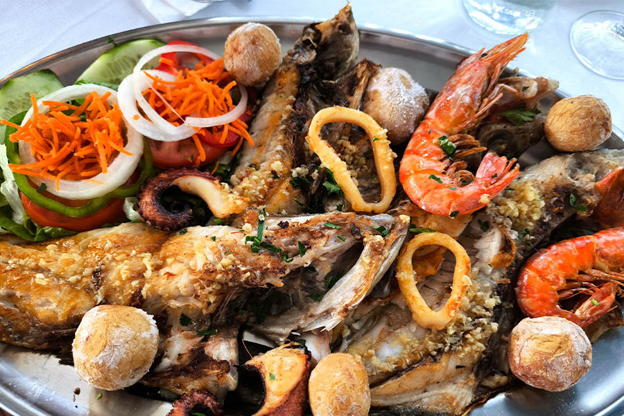 Kulinarisch sind auf Lanzarote zwei Richtungen markant: Der fangfrische Fisch und das Fleisch der Ziege oder des iberischen Schweins. Seehecht, Papageifisch, Thunfisch, Dorade und Rotbrasse, Zackenbarsch, Wolfsbarsch oder Wrackbarsch sowie auch Soldatengarnele, Hummer und Oktopus, manchmal auch Muräne, kommen auf fast jeder Fischplatte vor, die ich mir in den zahlreichen Fischrestaurants an der Küste bestelle. Zu oder vor fast jedem Gericht gibt es als Beilage oder Vorspeise die kanarischen Kartoffeln, Papas Arrugadas, oder Papas Bonitas als kleine Kartoffeln, etwas süßer. Dazu immer die rote und grüne Mojo, Saucen aus Avocado und Knoblauch für die grüne Version und Paprika für die rote Variante. Gerrne gibt es zum Abschluss oder auch als Vorspeise eine Käseplatte aus verschiedenen Schafs- und Ziegenkäsen unterschiedlicher Reifegrade. Die Rinde besteht dabei meist aus kanarischem Gofio, geröstetem Getreide. Die Majorera-Ziege ist dabei eine einheimische Kanaren-Ziege.