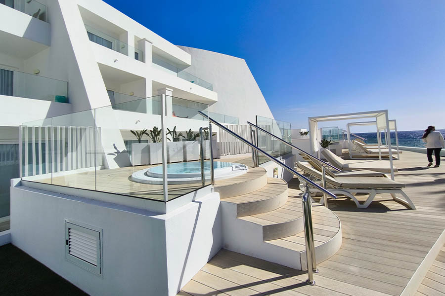 Noch weiter zieht es mich nach Süden. Der Tag neigt sich dem Ende zu. Eigentlich müsste ich nun in dem einzigen, in Zusammenarbeit mit Cesar Manrique geschaffenen Hotel der Insel in Costa Teguise nahe der Hauptstadt Arrecife übernachten, das heute von einer großen, spanischen Hotelkette betrieben wird. Doch mich reizt es mehr, den südlichsten Punkt der Insel anzusteuern, Playa Blanca. Mit Blick auf die benachbarte Kanareninsel Fuerteventura, die nur einen Katzensprung entfernt liegt. Hier liegt nicht nur der Faro Punta de Pechiguera, der alte und der neue Leuchtturm der Insel als Aussichtspunkt, sondern auch ein luxuriöses Hotel einer spanischen Hotelgruppe. Und wenn ich schon den ganzen Tag auf den Spuren des Insel-Helden Cesar Manrique unterwegs war, des Ibero-Stars von Lanzarote, dann ist es doch eine gelungene Abrundung, genau in jenem Hotel zu weilen, das eben dieser Bezeichnung gerecht wird. Lebendig geht es hier zu. Vielseitig ist das Angebot für Familien und Paare und reichhaltig die Küche, die den Gast mit kanarischen Spezialitäten verwöhnt. „Muy bien“ – sehr gute Wahl bekräftigt der Koch mich und andere Gäste strahlend bei der Auswahl der erlesenen Fisch- und Fleischgerichte der Region, die einem im Umfeld des Atlantik-Blicks im Restaurant des Hotels besondere Gaumenfreuden bereiten. Luxuriös bettet sich der Reisende in einer Suite und blickt auf den atemberaubenden Sonnenuntergang, während er bis abends noch im Zimmer-eigenen Jacuzzi entspannen kann. So lebt es sich, im Einklang mit der Natur. Das hätte Cesar Manrique wohl gefallen.
