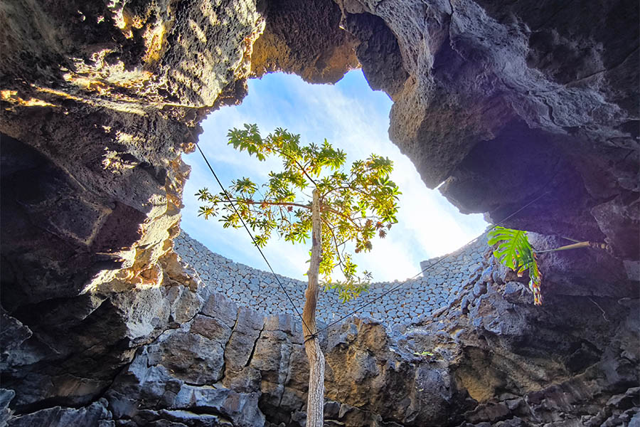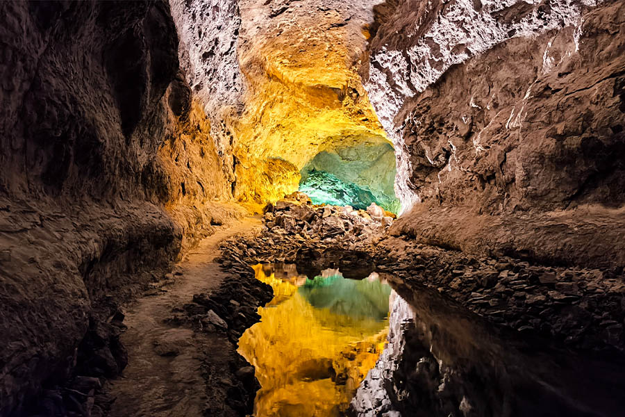 Noch mehr Manrique bitte. Diesmal wieder unter die Erde. Die Cueva de Los Verdes, ein acht Kilometer langes, weitverzweigtes Höhlensystem, 3000 Jahre alt, von dem Cesar Manrique einen Kilometer ausbauen ließ zu einem spektakulären, unterirdischen Besichtigungspunkt. Es ist eines der ersten Werke des Künstlers. 45 Minuten kann man hier, aber nur mit Führung, durch die Zauberwelt unter der Erde wandeln und kommt aus dem Staunen nicht heraus. Lichtinstallationen sorgen für die Effekte, die das Erlebnis ausmachen. Diese wurden von Jesús Soto, ebenfalls ein kanarischer Künstler, entwickelt. Ein Sammelsurium aus Formen und Farben, von schwefelgelb bis saftig grün, erwartet den Besucher. Von der Decke hängen kleine Tropfen. Sie werden Lavatränen genannt, erklärt mir meine Reiseleiterin Philine, die mich heute kreuz und quer über die Insel begleitet. Und wieder ein Konzertsaal unter der Erde, diesmal für 300 Zuschauer, die sich der einzigartigen Akustik erfreuen können.