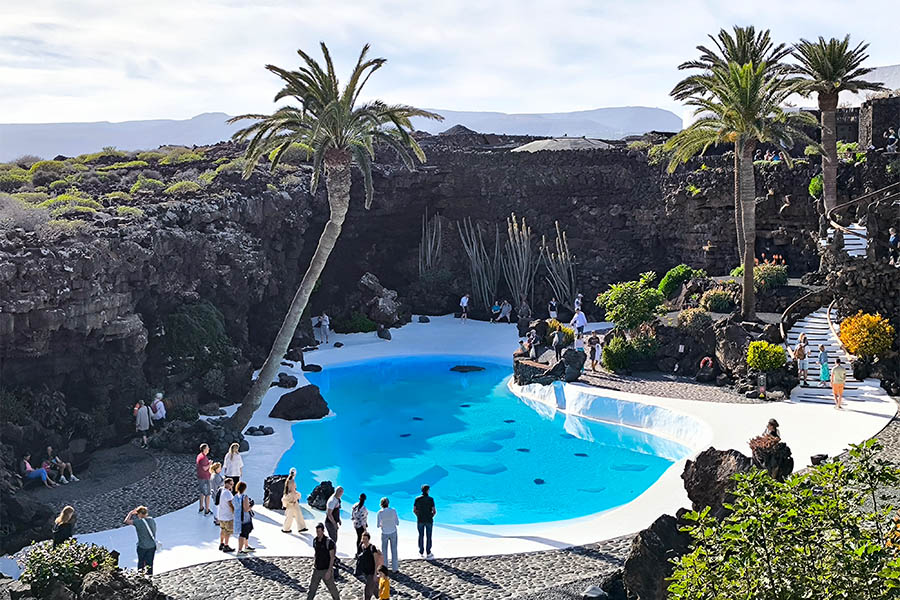 So gelange ich nahe der ehemaligen Hauptstadt Teguise mit ihren malerischen Gassen, in denen sonntags der größte und lebhafteste Markt der Insel stattfindet, zum Museum LagOmar. Manrique kaufte das Anwesen im Auftrag des Immobilienmaklers Sam Benady und gestaltete es mit dem bereits bekannten Künstler Jesús Soto zu einem Wunderwerk der Architektur um, dank der in Vulkanstein geschlagenen, halboffenen Räume. Das gefiel wohl auch dem aus „Doktor Schiwago“ bekannten Schauspieler Omar Sharif. Und er kaufte das Anwesen, verlor es aber am selben Tag wieder beim Bridge-Spiel. Darüber war er so verärgert, dass er Lanzarote für immer verließ. Der deutsche Architekt Dominik von Boettinger kaufte das Anwesen 1989, das heute als Museum zugänglich ist. Zusammen mit seiner Frau Beatriz van Hoff betreibt er es nun und auf dem Gelände befindet sich die mondäne Bar „La Cueva“.