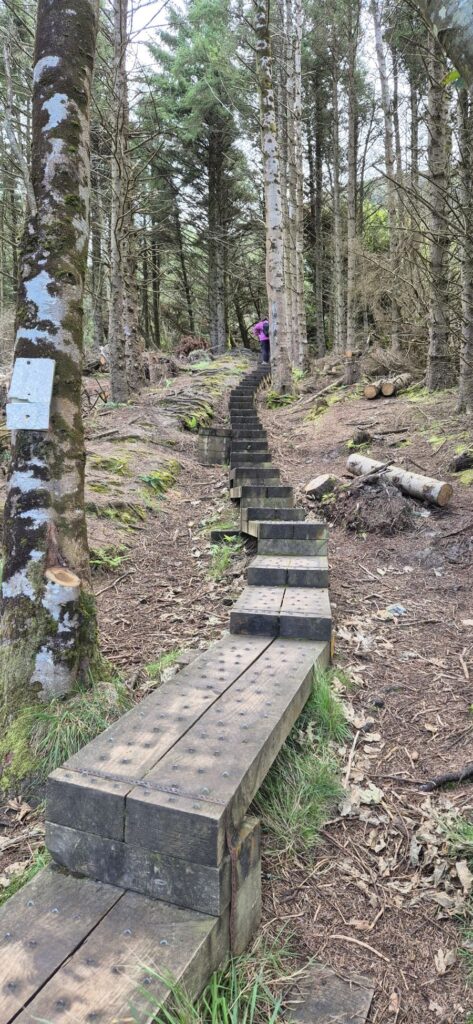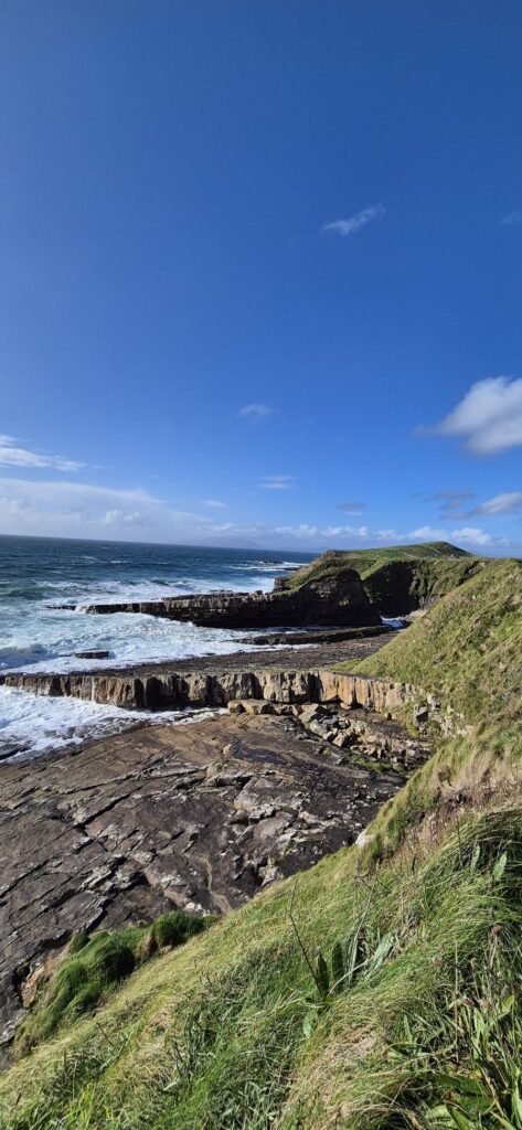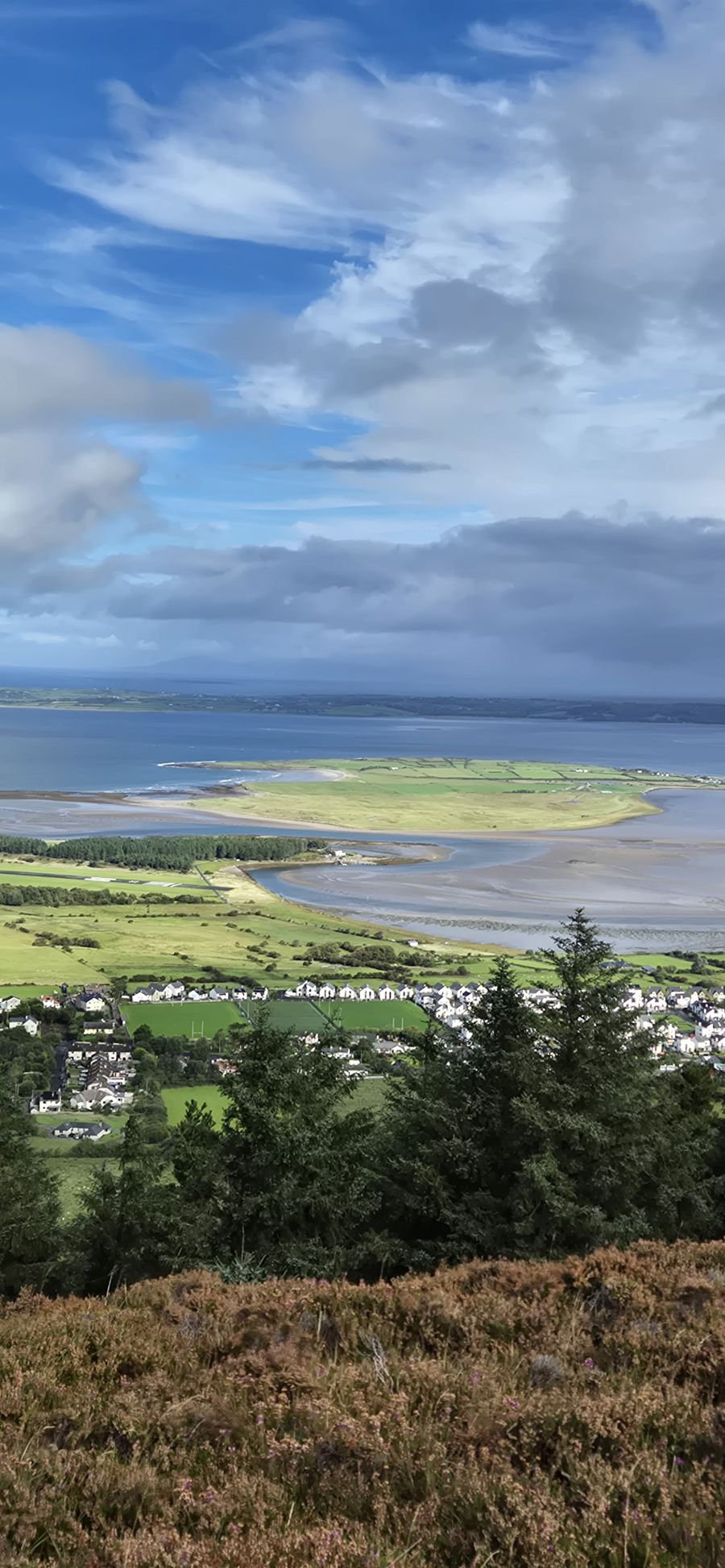 In der Grafschaft Sligo erhebt sich der Knocknarea, ein weiterer „Hügel der Könige“, der eine tiefe Verbindung zur irischen Geschichte und Mythologie hat. Der Hügel diente Überlieferungen zufolge als Krönungsort für die früheren Königinnen und Könige von Connacht. Etwas über 320 Höhenmeter überwinden wir, der Weg ist gut markiert und führt je nach Route über Holzstufen oder eine hölzerne Moorbrücke. Von oben bietet sich ein atemberaubender Blick auf die Bucht und den Küstenort Strandhill.