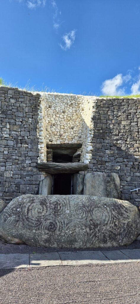 Älter als Newgrange und nur wenige hundert Meter von der großen Anlage entfernt liegt der Gräberkomplex von Knowth. Hierbei handelt es sich um einen großen Grabhügel mit einem Durchmesser von ebenfalls circa 90 Metern. Anders als Newgrange befinden sich im Gewölbe zwei gegenüberliegende Gänge. Hierbei endet einer der Gänge ebenfalls in einer kreuzförmigen Grabkammer. Wie Satelliten umgeben siebzehn kleinere Grabhügel das Hauptgrab. Über 260 Randsteine mit steinzeitlichen Gravuren wurden hier entdeckt.