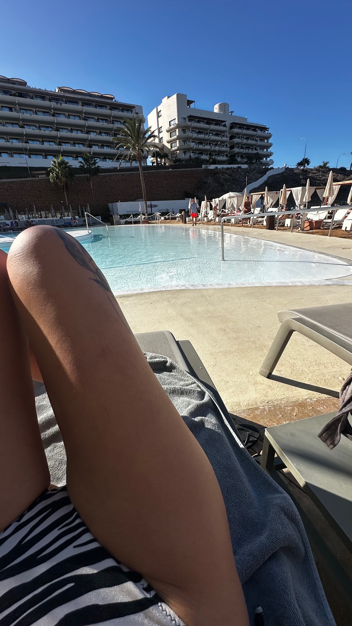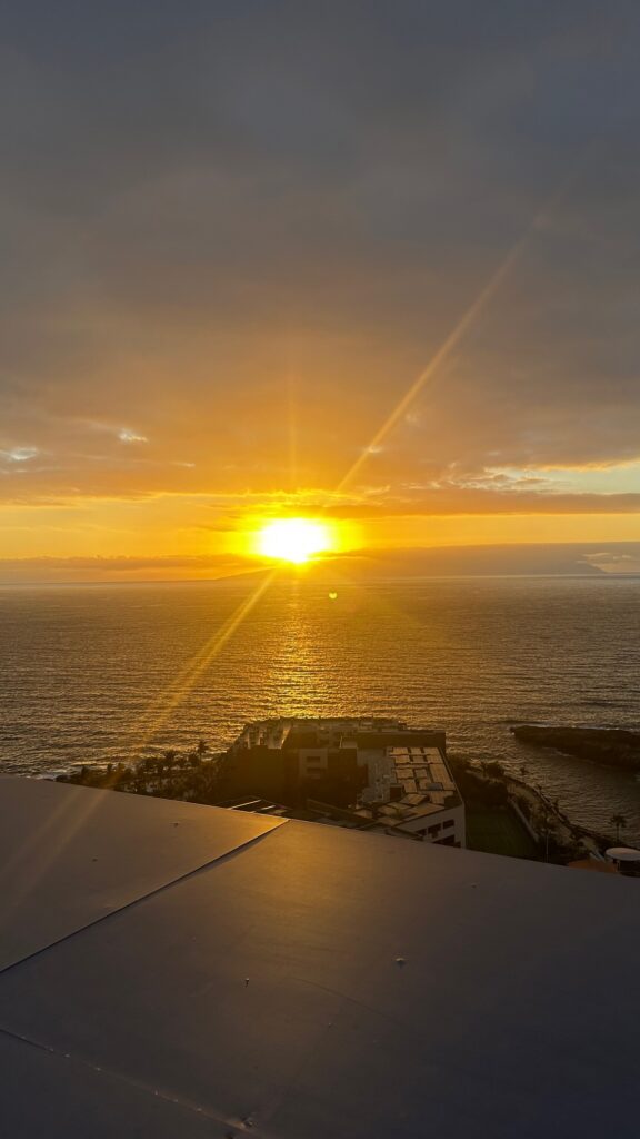Nach etwas über vier Stunden Flug, abgehoben im grau verregneten Frankfurt, landen wir auf Teneriffa. Warmer Wind, Sonnenschein, Palmen und ein Gefühl, als hätte man die schwere Last des Alltags beim Auschecken am Flughafen abgegeben, empfängt uns. Ich strecke das Gesicht dem blauen Himmel entgegen, krame die Sonnenbrille heraus und beglückwünsche mich selbst schon jetzt zu dieser Entscheidung. Ein schicker Mini-Van steht bereit und bringt unsere kleine Reisegruppe innerhalb einer knappen halben Stunde an die Südwestküste von Teneriffa in eines der größten 5-Sterne-Hotels Spaniens: das legendäre Hard Rock Hotel Tenerife.