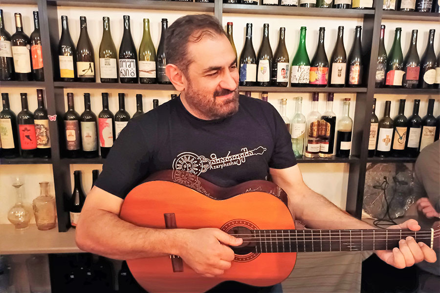 Seinen Namen will er zuerst gar nicht verraten – bittet mich stattdessen: „Höre, was ich singe, und du weißt, wer ich bin.“ Und während ich, passend zu seinem Äußeren, raue Klänge erwarte, formt sich Sanftmütiges von seinen Lippen – ein Lied, das von Freiheit, Liebe, Frieden, Zusammenhalt und dem Charakter des georgischen Volks handelt. Ich bin überrascht und gleichzeitig bewegt, wie viel Herzlichkeit dieser Mann in seinen Liedern auszudrücken vermag, obwohl seine Erscheinung das keinesfalls vermuten lässt. Ich werde in den nächsten Tagen erfahren, wie sehr Luarsabs Auftreten für Georgien steht. Und so lausche ich seinen Liedern, die er später auch gemeinsam mit seiner Tochter Ekuna anstimmt, und trinke bernsteinfarbenen Weißwein. Die Klänge und Worte des Wirtes Luarsab aus Tiflis werden mich in den kommenden Tagen meiner Reise noch lange begleiten…