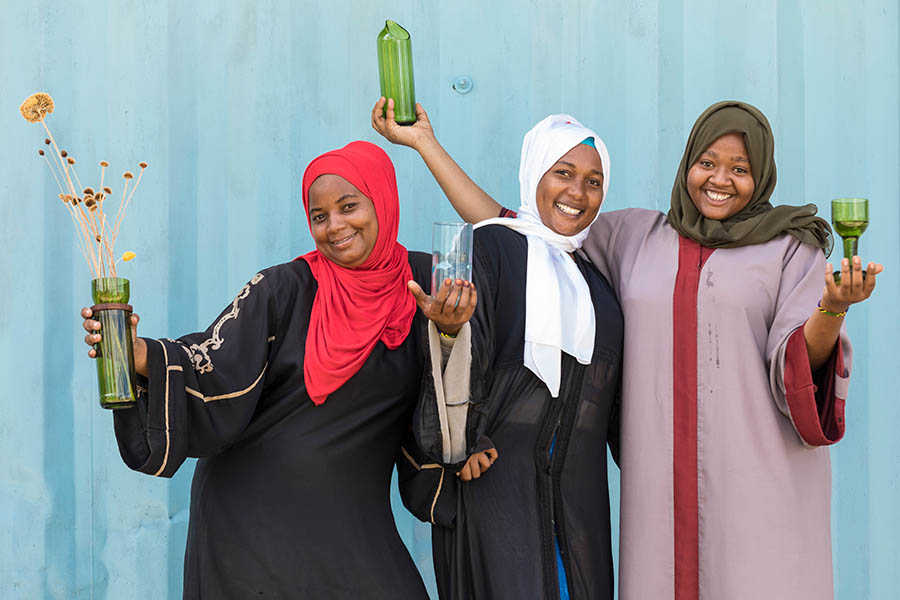 Ich gelange zur Einrichtung Chako Zanzibar. Hier treffe ich auf die Niederländerin Anneloes Roelandschap, die mit ihrem Team aus fünf einheimischen Führungskräften und 55 Mitarbeitern der umliegenden Gegend die Wiederaufbereitungs- und Verarbeitungsanlage führt. Aus alten Flaschen entstehen hier Kerzenhalter, Lampen, Gewürzgläser und vieles mehr. Ich frage die 24-jährige Najma, was sie bewegt hat, bei dem Programm mitzumachen. Inspiriert durch ihre Freunde ist sie hierher gekommen. In der Hoffnung, hier zu lernen, wie man Dinge verarbeitet und selbständig arbeitet außerhalb der Familie. Sie möchte später selbst einmal einen eigenen Betrieb eröffnen. Fortschrittlich für eine junge Frau, die in der Tradition der Familie oft eingebunden und abhängig ist, denke ich bei mir. Wie gut, dass es diesen Betrieb gibt, den auch Reisende auf der Insel besuchen können, um zu erleben, wie die Bevölkerung sich für ihre Insel engagiert.