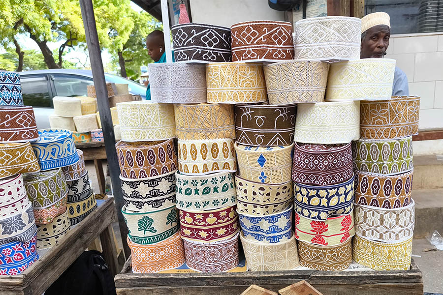 Zuerst gelange ich nach Stown Town, einem der ältesten Teile der gleichnamigen Inselhauptstadt Sansibar. Der Oman war es, der ab 1840 die meist aus Korallensteinen erbauten Häuser der Stadt errichten ließ. Seit 1698 befand sich Sansibar bereits unter deren Einfluss und der Sklavenhandel blühte. Stown Town, heute ein kleiner Teil der Hauptstadt, ist ein Zeugnis der wechselvollen Kolonialgeschichte. Nach dem Oman kamen die Engländer, dann 1884 die Deutschen und 1890 wieder die Engländer, weil man die Insel gegen Helgoland eingetauscht hatte. Ich wandle durch die belebten, engen Gassen. Überall wird in den Souks, den Marktstraßen, Kurioses, Kreatives, Nützliches und Souvenirs angeboten. Die Darajani-Markthalle ist Zentrum des Geschehens. Gewürze, die diese Insel so sehr prägen, sind allerorts in großer Bandbreite zu finden. Die Straßen werden auch immer wieder von Juwelier-Geschäften gesäumt, die den berühmten blauen und sehr wertvollen Tanzanin anbieten. Ein Stein, der mit einem Diamanten vergleichbar ist, und dessen Wert je nach Karat und Blaufärbung schnell Hunderttausende Dollar kosten kann.