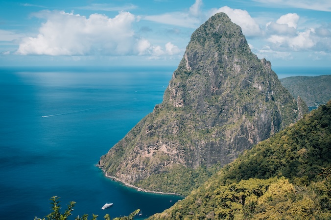 Vor allem wegen seiner fantastischen Kulisse mit den zwei Pitons lässt heute kaum ein Kreuzfahrtschiff St. Lucia auf seiner Route durch die Kleinen Antillen aus. In „Fluch der Karibik“ bilden die Dschungelberge die dramatische Kulisse für Captain Jack Sparrows Abenteuer.             „Glaubt man alten Geschichten, hat Blackbeard in St. Lucia seinen legendären Schatz versteckt, sagt Sheldon Leon, während er eine Gruppe Kreuzfahrer durch üppigen Bergdschungel auf dem Tet-Paul-Wanderweg führt. Schillernde Purpurkehl- und smaragdfarbene Antillenhaubenkolibris schwirren an den Ausflüglern vorbei. „Wen würde es schon überraschen, wenn irgendwo hier oben einmal tatsächlich ein altes Piratenversteck entdeckt wird?“, fragt der 48-jährige Guide. Vom höchsten Aussichtspunkt haben die Wanderer eine atemraubende Weitsicht über den Dschungel hinüber zum Petit Piton. Ein Großteil der schroffen Steilhänge wurde wohl noch nie von Menschen betreten und dürfte sich einst als Versteck für goldgefüllte Truhen sicherlich angeboten haben.