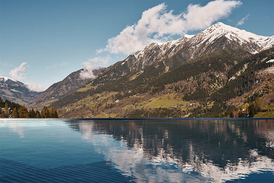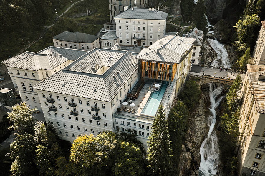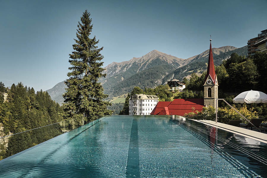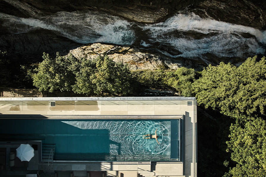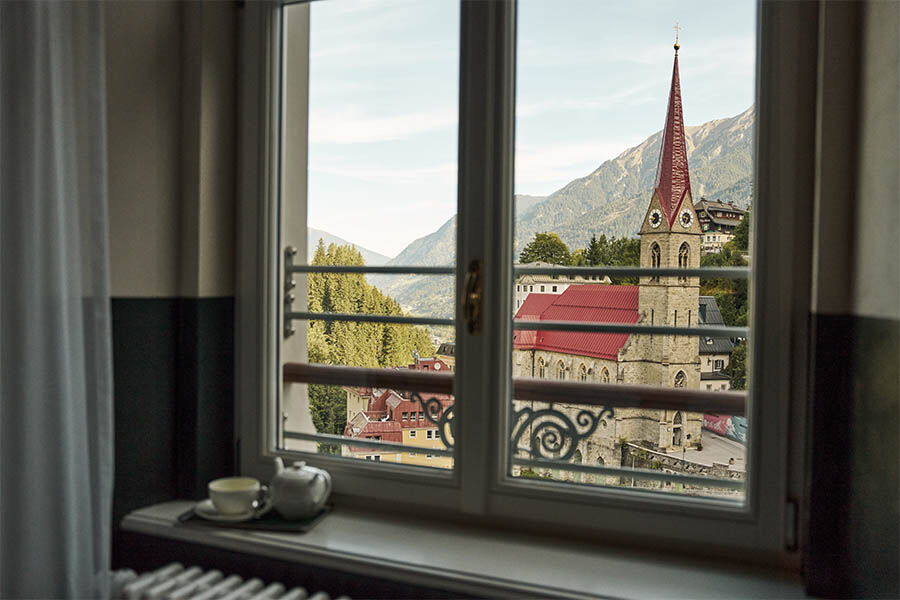 Das Grand Hotel Straubinger stellt dafür 46 stilvoll eingerichtete Zimmer sowie den ehrwürdigen Straubinger Saal zur Verfügung. Die Gourmetküche nimmt den kulinarischen Mittelpunkt des Hauses ein. Das ganzheitliche Spa-Angebot mit Anwendungen aus sieben Themenwelten, welche die Kraft der Natur in den Fokus rücken, bietet ein ergänzendes Well-Being-Konzept. Ein weiteres Highlight, das zu ehrfürchtigem Staunen einlädt, ist der Outdoor Infinity Pool direkt über dem Wasserfall. Aber auch die raumhohen Panoramafenster mit Blick auf die Kirche lassen mich einen Moment die Luft anhalten, um das lebende Gemälde, welches sie in den Raum holen, angemessen zu würdigen.