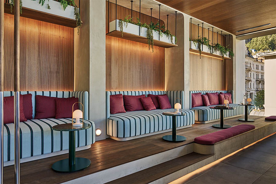 So auch das Fünf-Sterne Grand Hotel Straubinger, das mit dem Badeschloss zusammen den ikonischen Straubingerplatz, das gesellschaftliche Zentrum des Kurorts, bildet. Getreu dem Gestaltungsprinzip „Arbeiten mit den Schichten der Vergangenheit“ hat das renommierte Wiener Architektenbüro BWM Architekten ein anspruchsvolles Hotelkonzept entwickelt, das die beiden gegenüberliegenden Häuser für die Hirmer-Gruppe in die Zukunft führen soll. Beide Hotels wurden nach langem Leerstand und aufwändigen Renovierungsarbeiten im Herbst 2023 eröffnet.
