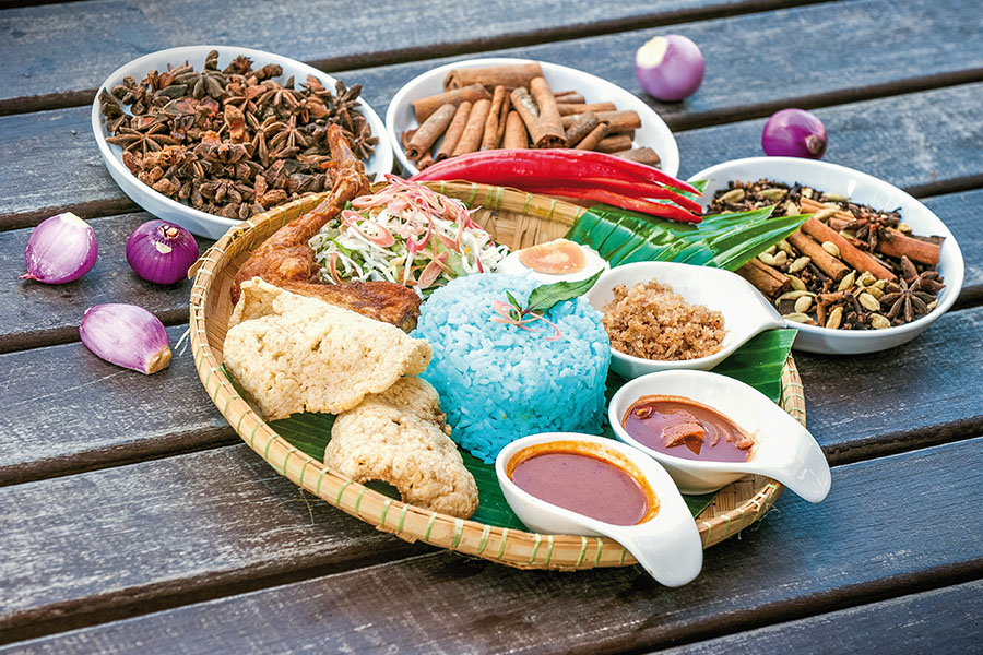 George Town wurde im Jahr 1786 von der Britischen Ostindien-Kompanie gegründet und zeigt noch heute viele Spuren der Kolonialzeit. Im Herzen des historischen Kerns schlendere ich durch die Kimberly Street, die im Chinatown der Stadt liegt. Sie ist eine der bekanntesten Food Streets in Penang. Hier brutzelt vor allem chinesisch geprägtes Essen in den großen Woks, meist serviert mit Reis. Viele Gerichte beginnen mit der Silbe „Nasi“ – gekochter Reis. Da gibt es Nasi Kerabu, Nasi Lemak oder Nasi Ayam. Besonders angetan hat es mir Nasi Kerabu, das mit blauem Reis serviert wird und zu den traditionellen Gerichten der Ostküste gehört. Der Reis erhält seine blaue Farbe durch die Blüte der blauen Klitorie.