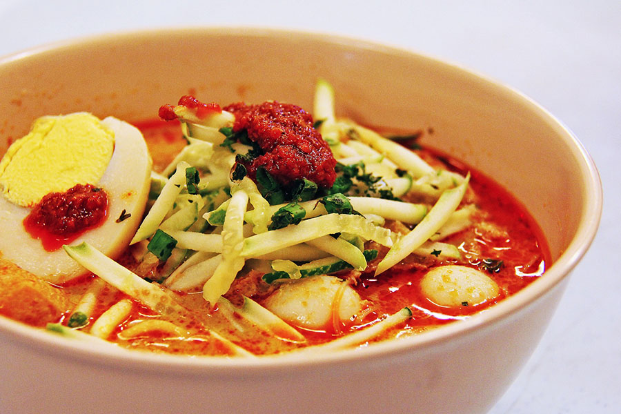 Eines der beliebtesten Gerichte Malaysias ist Nasi Lemak, traditionell auf Bananenblättern serviert. Nasi Lemak wird gerne zum Frühstück gegessen, aber auch zu anderen Tageszeiten bestellt. Der dazu gereichte Reis ist in Kokosmilch getränkt und wird mit einem Löffel Sambal abgeschmeckt. Gurken, geröstete Erdnüsse und Ei verfeinern die Speise. An einem Stand brät ein Händler Satayspieße auf einem Grill. Die kleinen Spieße sind ideal als Snack für zwischendurch – oder als Beilage. Meist kommt der Hähnchen- oder Tofuspieß mit einer scharfen Erdnuss-Sauce daher. Ein weiterer Klassiker ist Laksa – eine scharfe Currysuppe mit Kokosmilch und Chili. Laksa findet sich in verschiedenen Varianten in den kleinen Straßenrestaurants auf ganz Penang. Die Grundsubstanz ist immer ähnlich, die Einlage variiert häufig nach alten Familienrezepten.