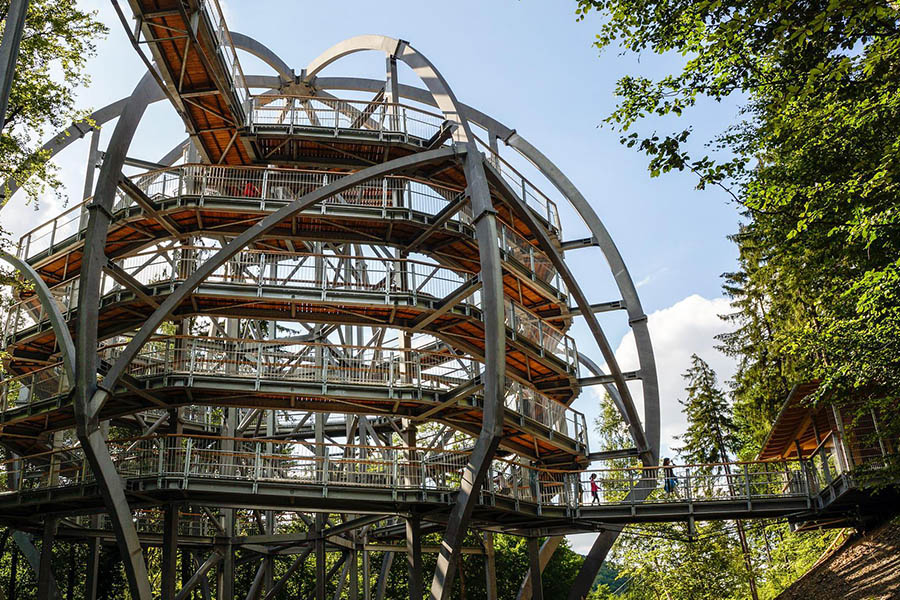 Wer an kompetenter Stelle nachfragt, wird mit hoffnungsvollen Fakten belohnt. Ich bin auf das Forstamt nach Clausthal gefahren und habe mich von Förster Michael Rudolph über den gegenwärtigen Stand von Flora und Fauna aufklären lassen. Der Förster erzählt mir bei einem Naturspaziergang, dass gerade der Nationalpark eine harte Phase durchmache, aber das wäre in erster Linie den vergangenen Monokulturen und den letzten Dürrejahren geschuldet. Michael Rudolph beruhigt den Wanderer und Naturfreund mit dem Statement, dass jetzt schon kräftiges Grün zwischen gekipptem Holz seinen Weg zur Sonne findet. „Nur heute wird nicht mehr auf das schnelle Wachstum der Fichte gesetzt, heute dominieren Buchen, Eichen, Birken und Douglasien, wir setzen viel stärker auf Diversität als unsere Vorgänger. Wir wissen allerdings auch, dass wohl erst unsere Kinder von der neuen Vielfalt profitieren werden.“ Der Förster erklärt in diesem Zusammenhang, dass er keinem seiner Vorgänger wegen der Monokulturen einen Vorwurf machen würde. „Zum Zeitpunkt, als die Fichten gesetzt wurden, brauchte man zeitnah Bauholz, der zweite Weltkrieg hatte tiefe Spuren hinterlassen und das Land musste wieder aufgebaut werden, das machte den Harz zum Fichtenwald, jetzt bringen wir ihn wieder zurück zum Mischwald.“ Diese Natur-Metamorphose kann man sinnbildlich auf das komplette Erscheinungsbild des Harzes übertragen, dort wo früher Sahnetorte und banaler Hexentanz die Vorstellung des Besuchers nährte, regieren heute Baumwipfel-Pfade und hervorragend ausgebaute Mountain-Bike-Strecken. Die tiefen Wälder sind immer noch unheimlich und ein Reich für Luchs und Rothirsch. Neben Goethe und Heine suchten gerade die Gebrüder Grimm in diesen Wäldern die Kulissen für ihre Märchen. Bei meiner kleinen Harzreise stelle ich an verschiedenen Orten den Wandel vom eher biederen Urlaubsidyll hin zur angesagten Familien-Destination fest.