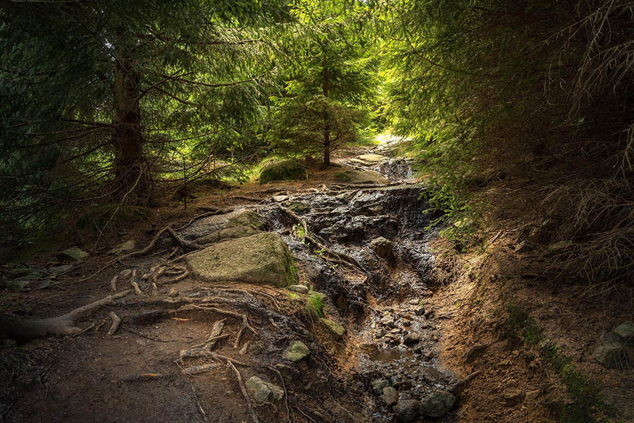 Doch mit dem Sturz der Grenztürme, war schon die erste Überraschung laut vernehmbar, Quedlinburg, Wernigerode und der Brocken erschienen über Nacht und etablierten sich umgehend als touristische Deutschlandziele. Kein Berg in Deutschland wird so vielköpfig bestiegen wie der Brocken, der höchste Berg im erwachten Gebirge. Neue Hotels entstanden in alten Mauern und Skikanonen wurden im Winter an den Abfahrtshängen in Stellung gebracht. Es wurden Omas Möbel aus den Ferienwohnungen geräumt, die alten Tapeten von den Wänden gerissen und man verordnete sich zunehmend eine helle skandinavische Stilausrichtung. Der dunkle Wald, der schon in Goethes Faust geschildert wurde, sollte heller in seiner Ausstrahlung werden. Dass er lichter wurde, war allerdings nicht geplant bei der scheinbar großen Umstrukturierung. Warme Sommer brachten aktive Wanderer auf den Brocken, aber auch fresswütige Borkenkäfer unter die Rinde der Bäume. Wüste Landschaften, geprägt durch aufragende Baumrümpfe und aufgeworfene Erdhügel, sind die Antwort des Oberharzes auf die Klimaerwärmung. Doch auch in diesem scheinbaren Chaos ruht offenbar Ordnung und System.